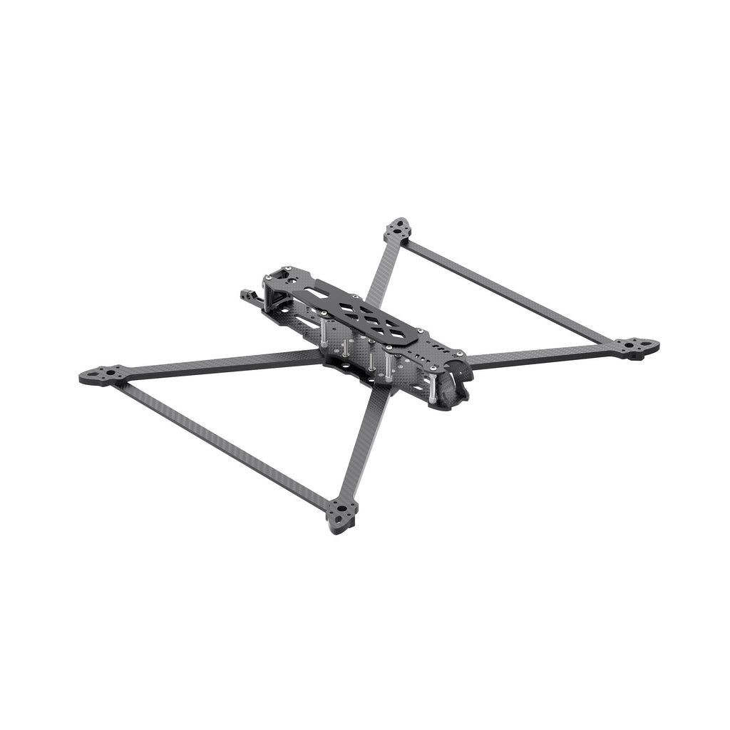 The FC fixing hole size is 30.5×30.5mm(M3), Camera lens fixing hole size is19x19mm(M2), Motor fixing hole size is 19x19mm(M3). Reserved enough space for VTX installation at the end of the frame, and the extended dimension frame can mount up to LiPo 6S 8000mah battery.