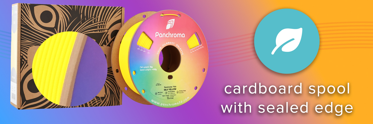 Panchroma Silk PLA filaments are all manufactured with a sealed cardboard edge, to deliver an environmentally friendly spool that is AMS compatible.